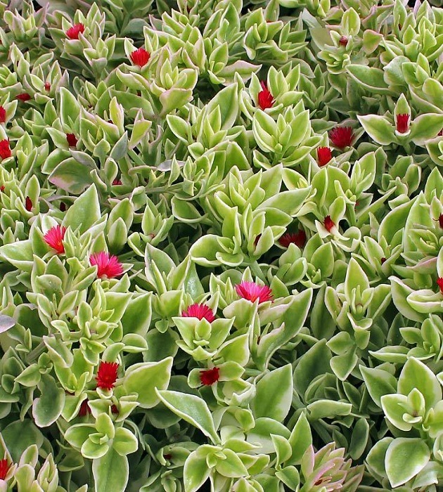 Aptenia ‘Variegated’ is a delightfulcomma-sign low-growing succulent admired for its eye-catching leavescomma-sign which display a blend of green and cream or white. Thriving in full sun to partial shadecomma-sign this easy-care plant is perfect for brightening up garden bedscomma-sign containerscomma-sign or hanging baskets. Variegated Aptenia is drought-tolerant and requires minimal attentioncomma-sign making it an excellent choice for gardeners looking for a hardycomma-sign colorful addition. Its vibrant foliage and compact form enhance any landscape with ease.