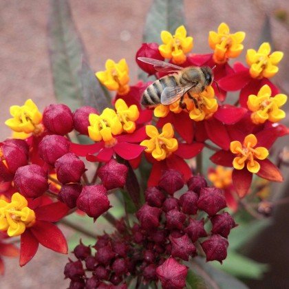 Asclepias curassavica ‘Milkweed Silky Red’ is a beautiful perennial with clusters of silky red flowers that attract butterflies and other pollinators. It thrives in full sun and well-drained soilcomma-sign making it perfect for garden bedscomma-sign borderscomma-sign or butterfly gardens. Milkweed Silky Red is drought-tolerant once established and requires minimal carecomma-sign adding vibrant color throughout the growing season. Its striking blooms and ability to support pollinators make it an excellent choice for enhancing any landscape.