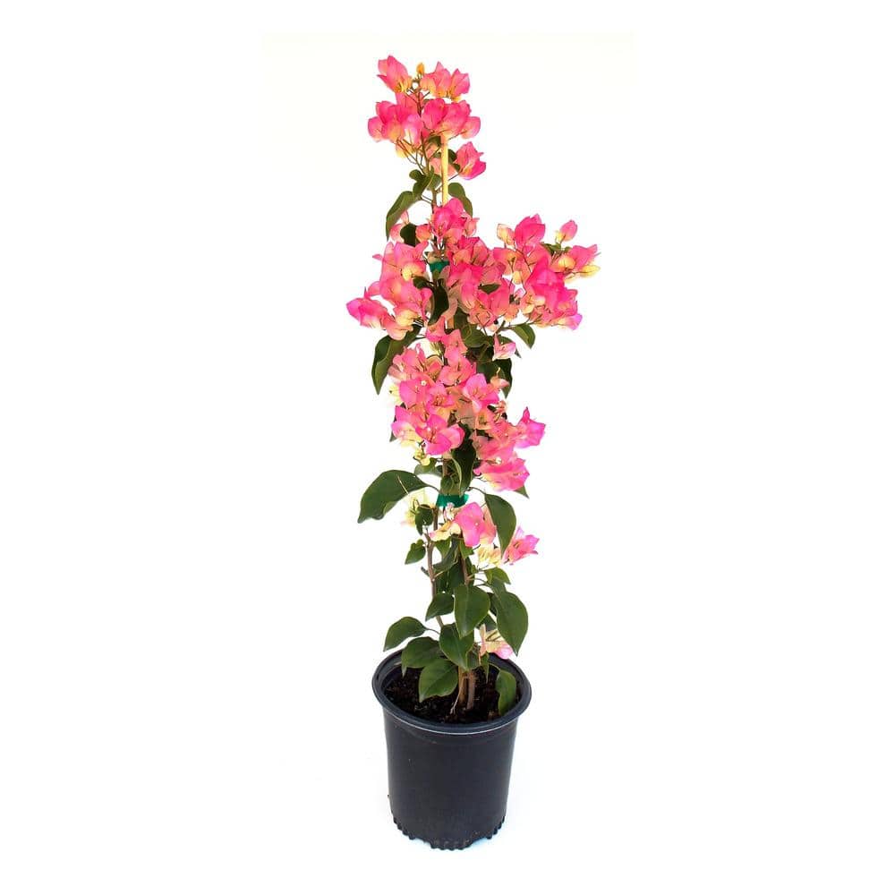 Bougainvillea ‘Thai Delight’ is a stunning variety known for its vibrant magenta-pink bracts that add a bold pop of color to any garden. This fast-growing plant thrives in full sun and well-drained soilcomma-sign making it ideal for trellisescomma-sign fencescomma-sign or containers. Thai Delight brings a tropical feel to landscapescomma-sign attracting butterflies and hummingbirds. Once establishedcomma-sign it is drought-tolerant and low-maintenancecomma-sign offering long-lasting color and beauty with minimal carecomma-sign making it a perfect addition to any outdoor space.