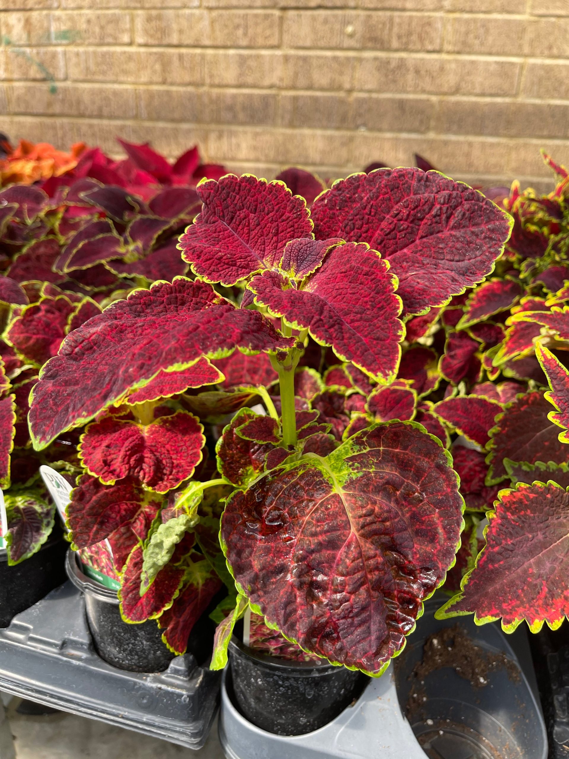 Coleus ‘Dipt In Wine’ is a striking variety known for its deep red to burgundy leaves that are highlighted by bold green edgescomma-sign creating a dramatic contrast. This coleus adds a touch of elegance to gardenscomma-sign containerscomma-sign and hanging baskets. It thrives in partial shade and is ideal for gardeners looking to add rich color to their outdoor spaces.