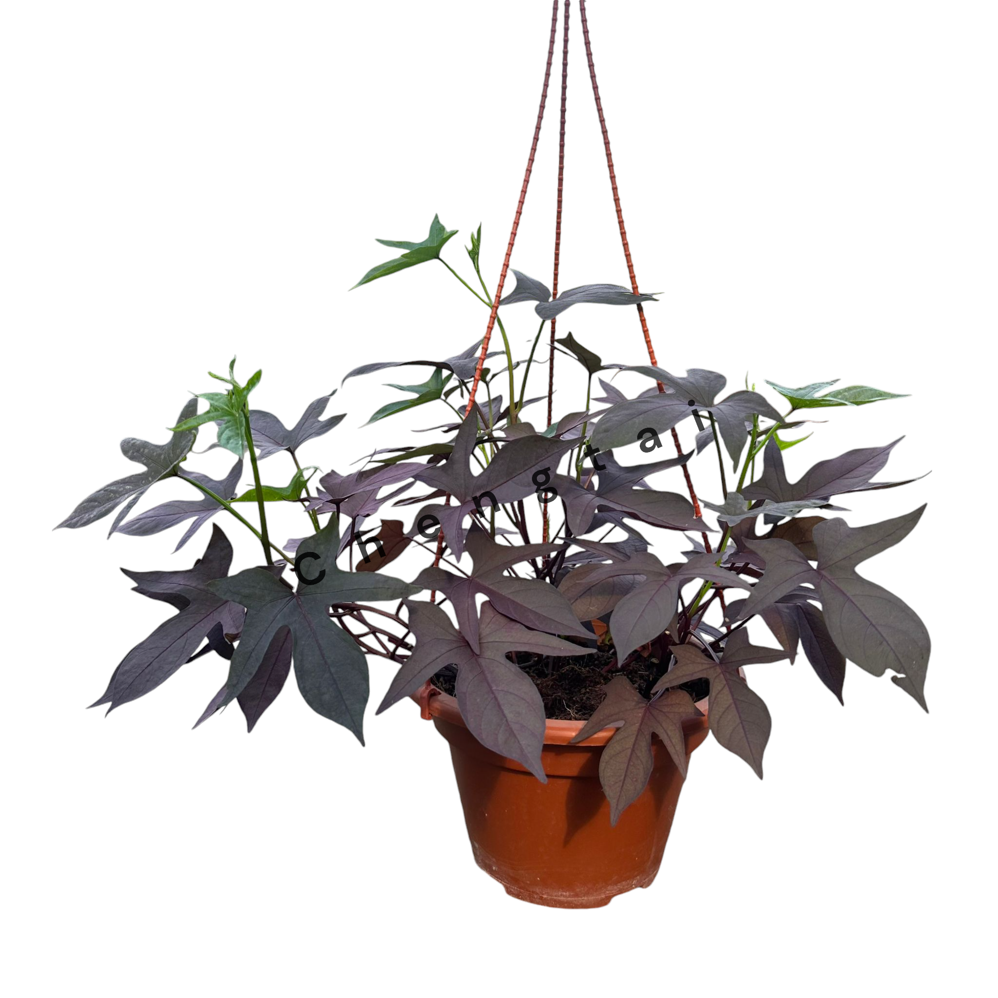 Ipomoea batatas ‘Blackie’, commonly known as Blackie Sweet Potato Vinecomma-sign is an ornamental vine that stands out for its dark purple to almost black foliage. This variety of sweet potato vine is highly valued for its vibrant colorcomma-sign vigorous growthcomma-sign and spreadingcomma-sign trailing naturecomma-sign making it perfect for containerscomma-sign hanging basketscomma-sign and ground cover. The plant’s deepcomma-sign rich foliage adds contrast and texture to garden beds and containerscomma-sign and it thrives in sunny or partially shaded areas.