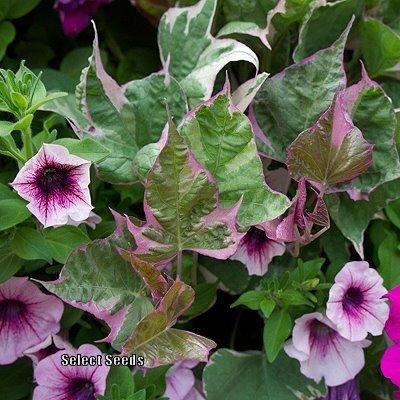 Ipomoea batatas ‘Tri-Color’, commonly known as Tri-Color Sweet Potato Vinecomma-sign is a beautifulcomma-sign ornamental vine valued for its multi-colored foliage. This variety showcases a unique combination of purplecomma-sign greencomma-sign and cream-colored leavescomma-sign making it an eye-catching addition to any garden. Its vigorous growth and spreadingcomma-sign trailing nature make it ideal for containerscomma-sign hanging basketscomma-sign garden bedscomma-sign and ground cover.
