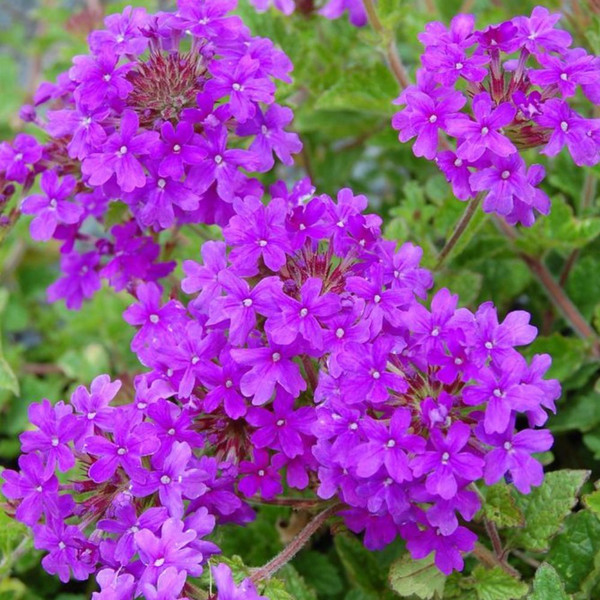 Verbena ‘Homestead Purple’ is a vibrantcomma-sign trailing perennial known for its prolific clusters of deep purple flowers. This variety of Verbena is perfect for garden bedscomma-sign borderscomma-sign hanging basketscomma-sign and containerscomma-sign providing continuous color from spring to fall. It is particularly appreciated for its drought tolerancecomma-sign low maintenancecomma-sign and ability to attract pollinators like butterflies and hummingbirds.